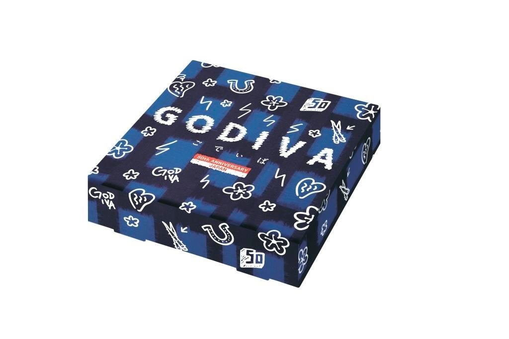 こがけんさんより、ゴディバ日本上陸50周年のお祝いをパッケージにも込めたいとお申し出いただき、デザインいただきました。