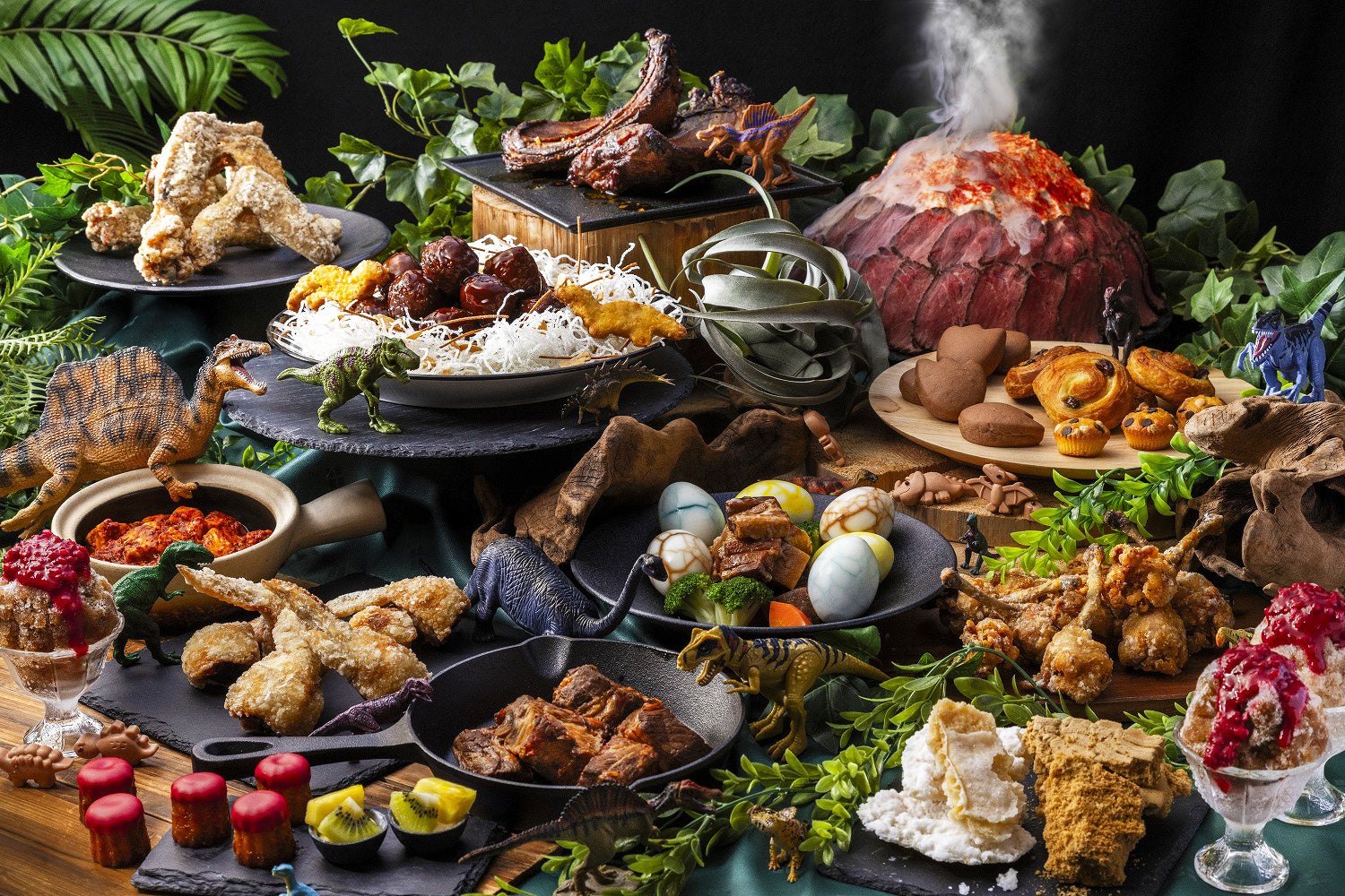 ディナービュッフェでは、恐竜時代にタイムスリップしたかのようなワイルドな骨付き肉や恐竜煮卵、溶岩麻婆豆腐、そして、恐竜型のチョコレートなど、見た目にも楽しい恐竜グルメが登場!お子さまから大人までワクワクと驚きがいっぱいの美味しい冒険をお楽しみください。