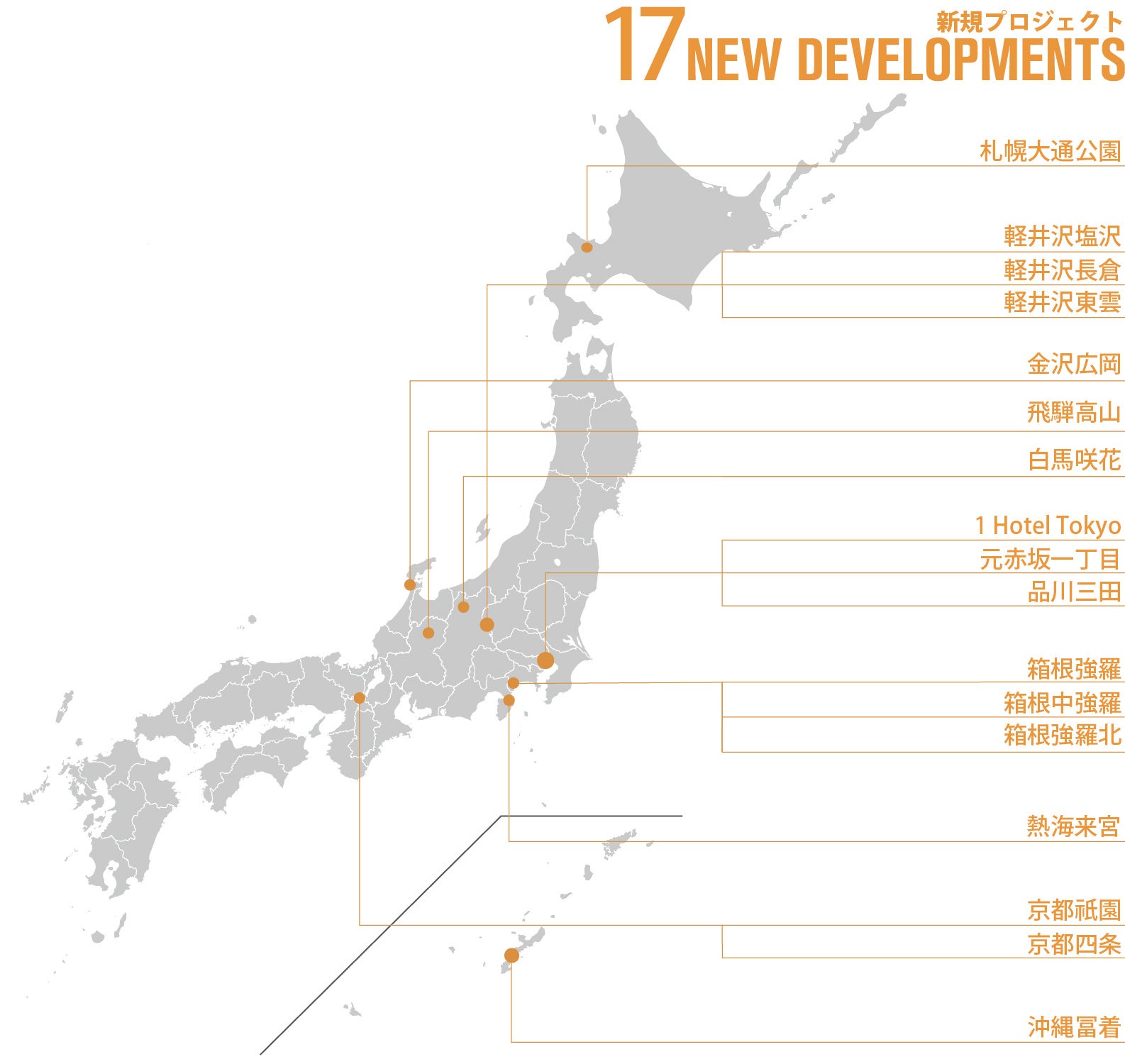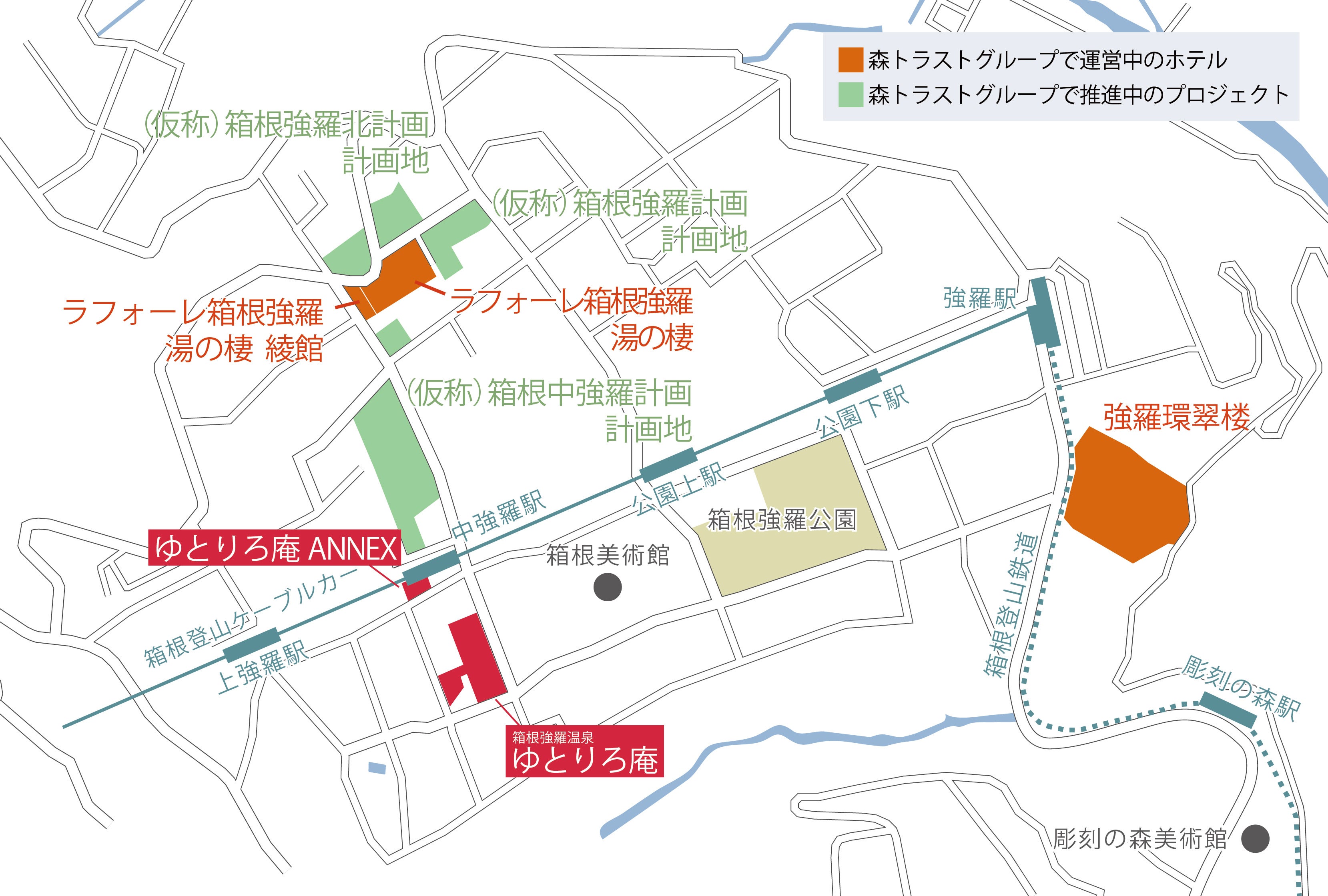 箱根強羅エリアにおける森トラストグループ運営中ホテルおよび推進中プロジェクト