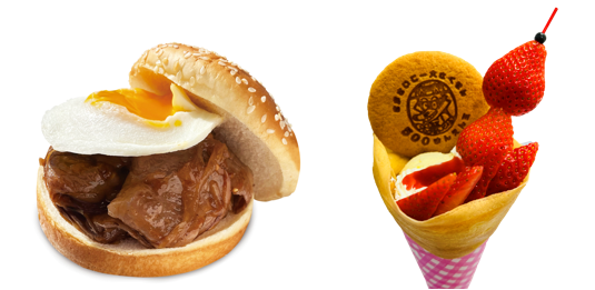 「ゾロリのさがぎゅうバーガー」と「ゾロリのいちごさんクレープ」