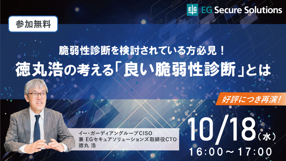 【EGセキュアソリューションズ株式会社】脆弱性診断について徹底解説する無料オンラインセミナー『徳丸浩の考える「良い脆弱性診断」とは』開催決定