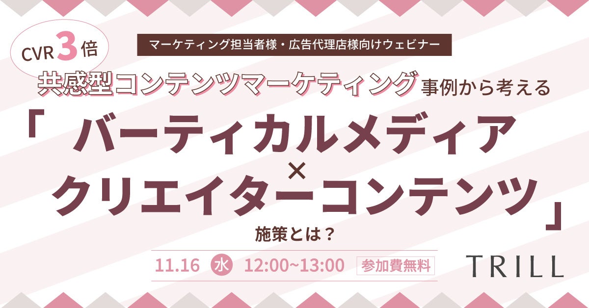 CVRを3倍に伸ばす「バーティカルメディア × クリエイターコンテンツ」施策とは? TRILL無料ウェビナー開催【11/16(水) 12:00〜13:00】