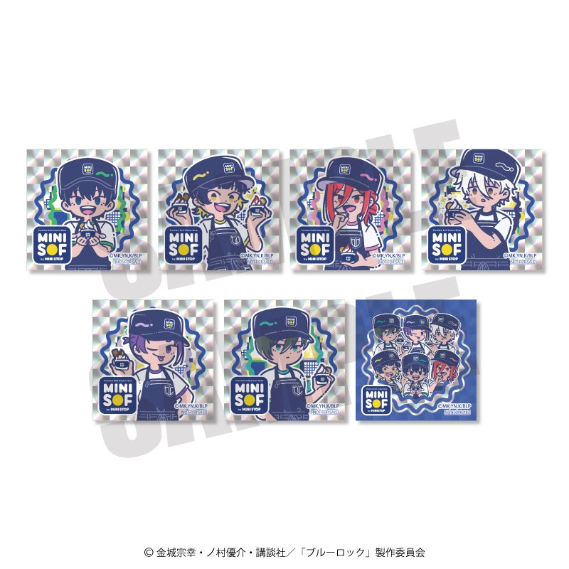 キャンペーンでは期間中、全店舗で対象商品を1品お買い上げいただいた方に、ランダムで1枚もれなくブルーロック☓MINISOF限定れとぽぷステッカー(全7種)が貰えるキャンペーンを実施致します。