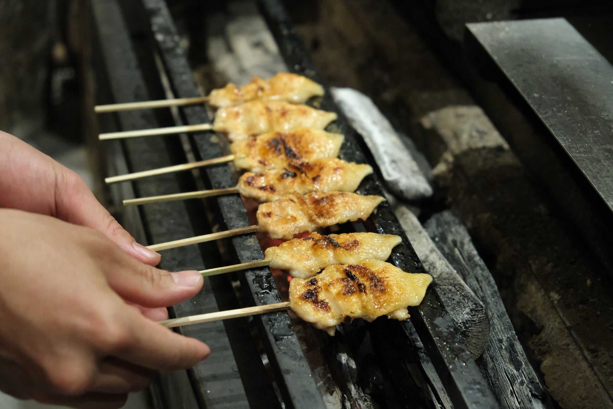 焼鳥は「串うち」「焼き(炭の扱いを含む)」ともに奥の深い技術ですが、「捌き」もコアスキルといえる分野です。部位ごとに、きれいに手際よく捌く技術は、ロス対策や付加価値をつける意味でも貴重な技術です。加えて、海外では日本と異なり丸ごと(内臓つき)仕入れるのが一般的なケースがあり、自身で捌く必要に迫られることも。このように日本では専門的な技術として食鳥処理を行いますが、海外ではそれが一般的な場合があるため、様々な技術を短期間で身に付けられるよう指導します。