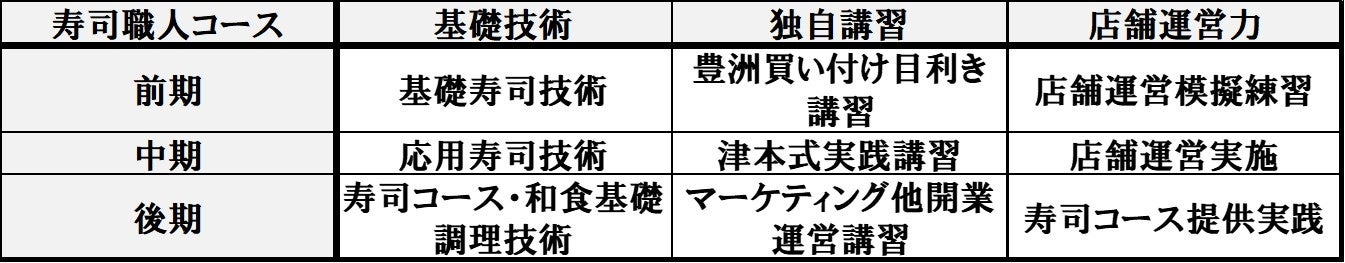《寿司職人コースのカリキュラム概要》