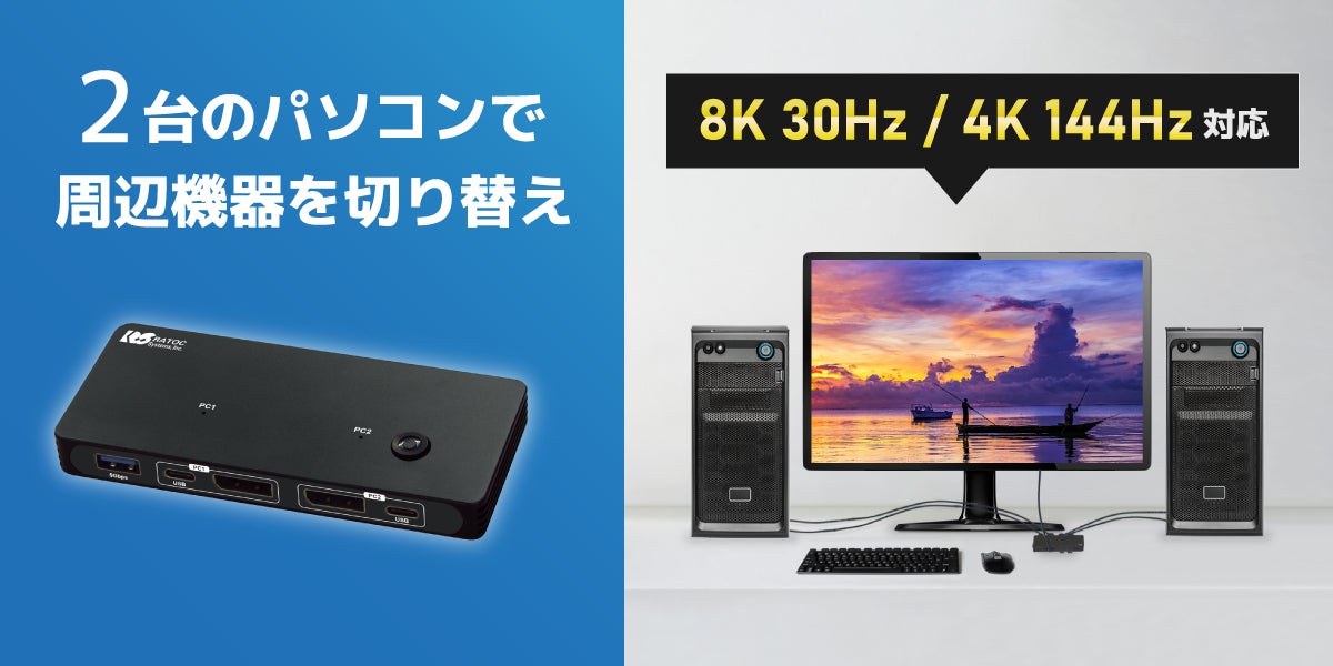 8K30Hz / 4K144Hz対応!パソコン2台で周辺機器を一括切替できるDisplayPortパソコン切替器、11月中旬発売