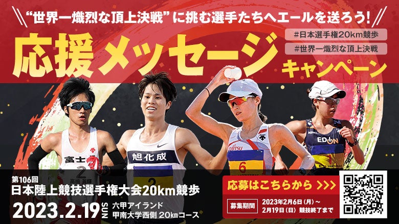 【日本選手権20km競歩】応援メッセージキャンペーン!~“世界一熾烈な頂上決戦“に挑む選手たちへエールを送ろう!~