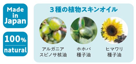 美容成分たっぷりのアルガンオイル(アルガニアスピノサ核油)など、肌にうれしい3種の植物スキンオイル(いずれも保湿成分)を使用。こめかみや首など肌の上にサッと塗って香りを楽しめます。