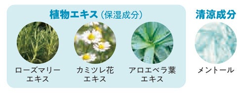 *ローズマリーエキス、カミツレ花エキス、アロエベラ葉エキス(いずれも保湿成分)