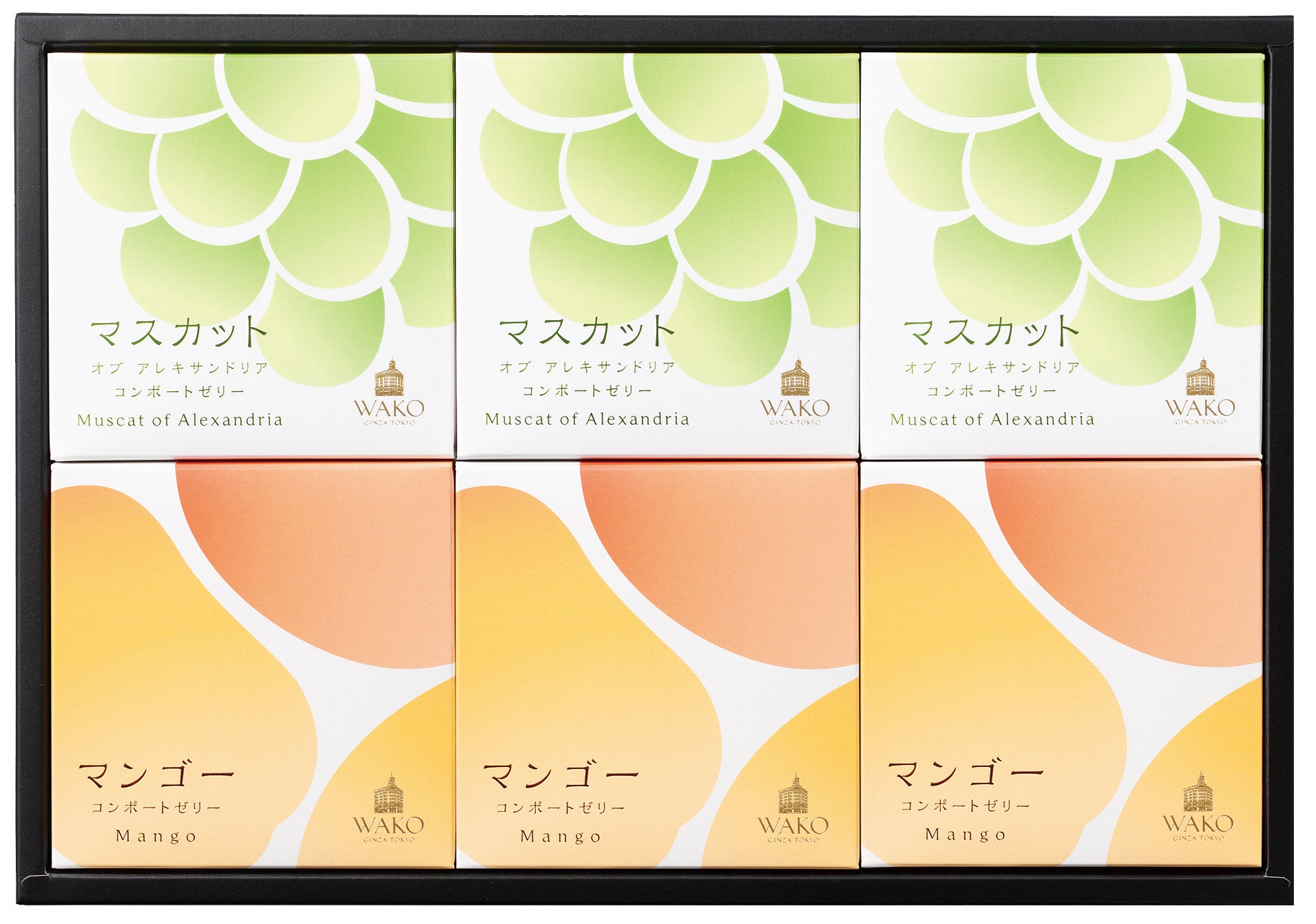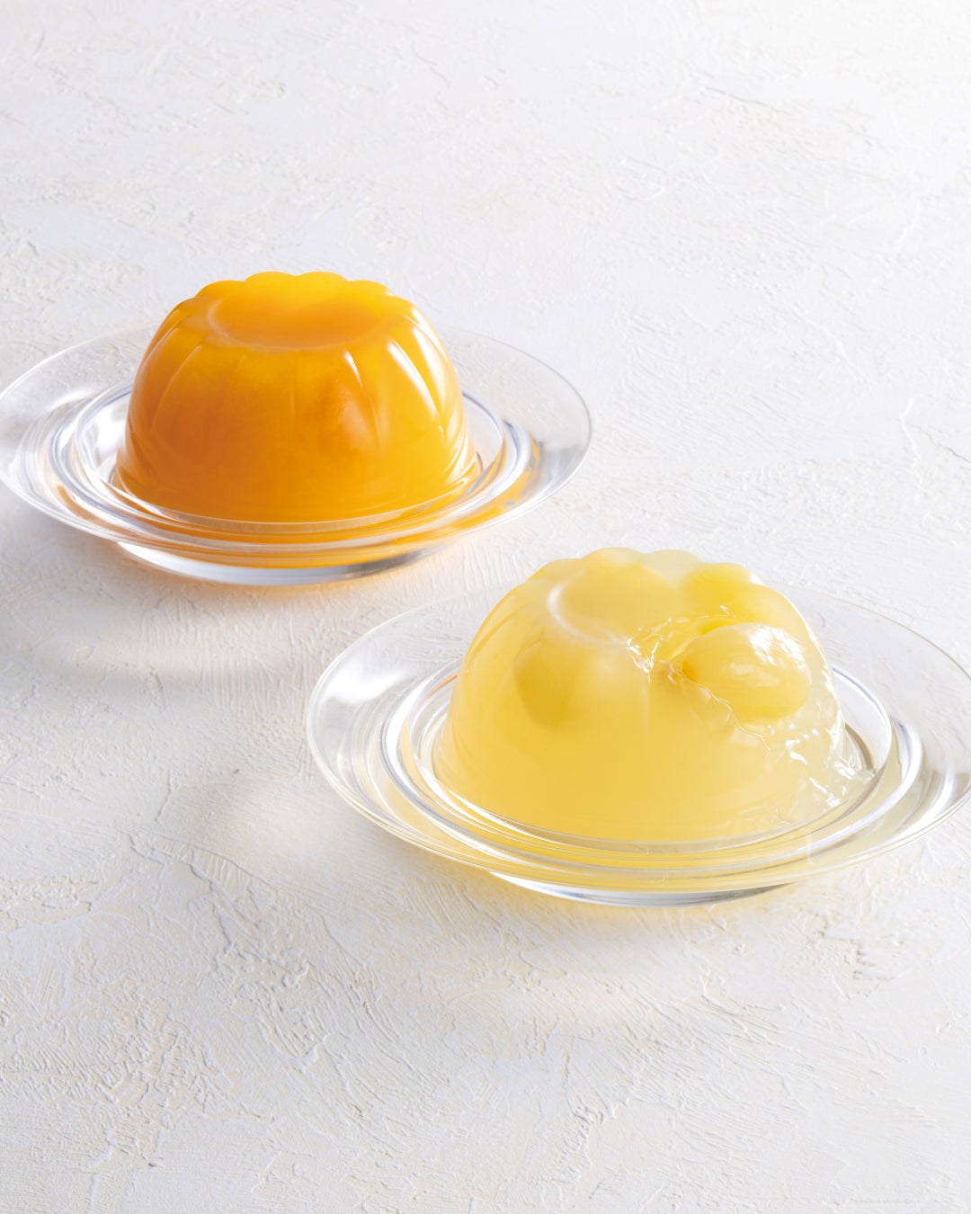 “葡萄の女王”と呼ばれる岡山県産「マスカット オブ アレキサンドリア」のゼリーは、芳醇な果肉のすり潰しに大粒の実がごろり。マンゴーのゼリーは、濃厚なインド産アルフォンソマンゴーのコンポートを宮崎県産マンゴーのすり潰しで包むように満たしました