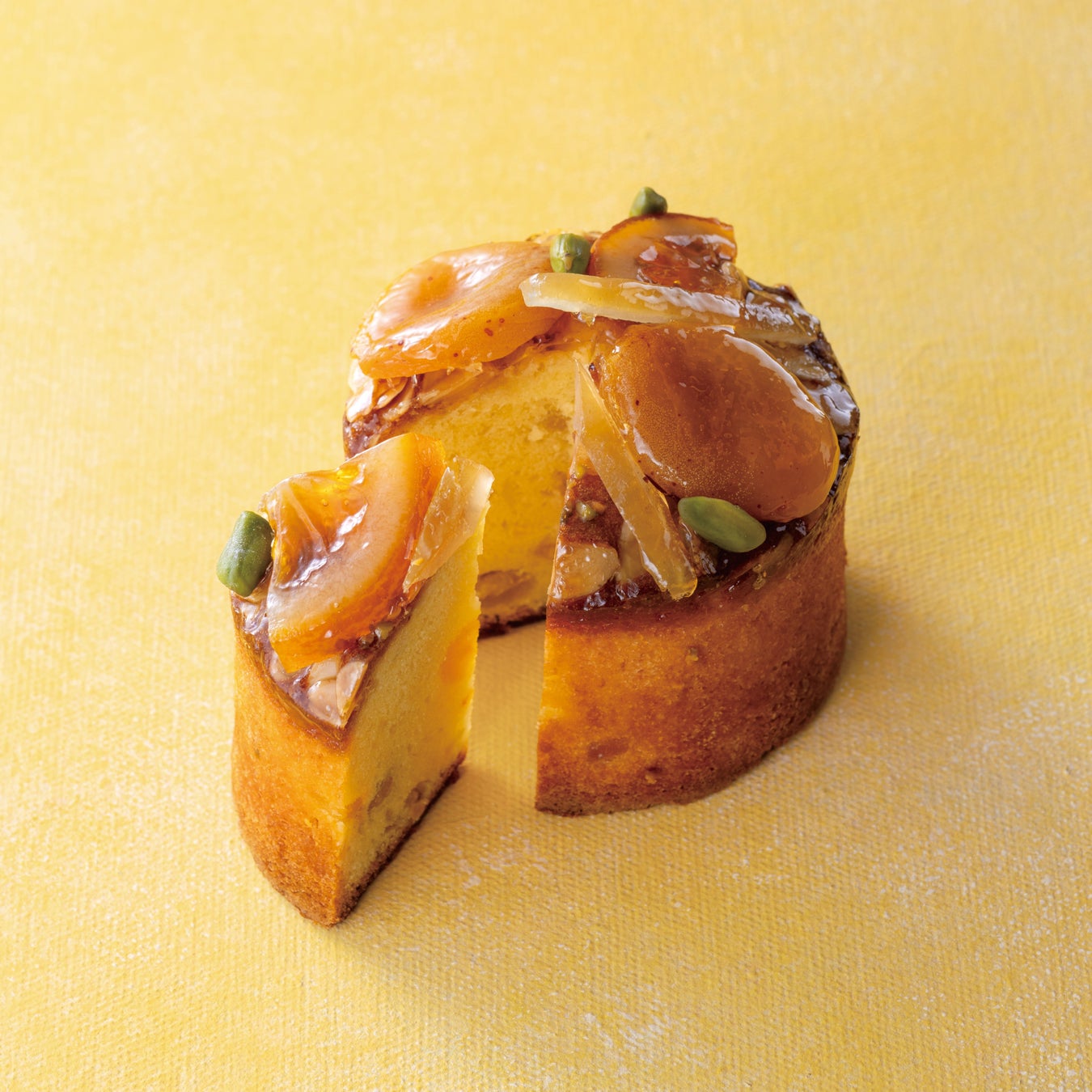 洋酒に漬け込んだアプリコットやパイナップル、オレンジやレモンなどの爽やかなフルーツを、ライムの香る生地に合わせた夏季限定のパウンドケーキです。天面もあふれんばかりの果実でデコレーション。香ばしいナッツも甘酸っぱい風味を引き立てます。夏の午後の憩いにおすすめの一品です。