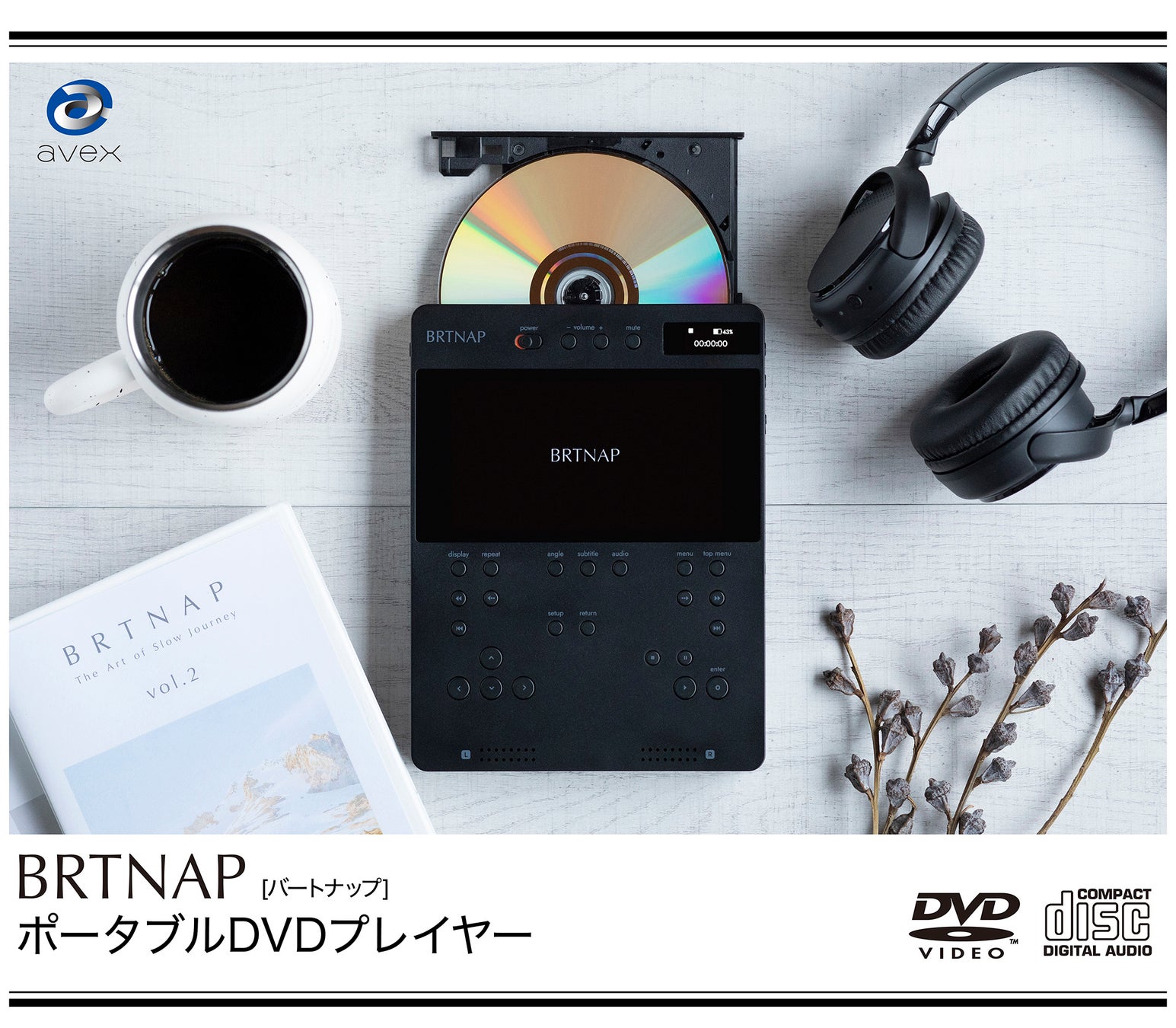 BRTNAPポータブルDVDプレイヤーは、エイベックスのBlu-rayやDVD製品のオーサリングを手掛けるスタジオエンジニアが開発したオリジナルのハードウェア製品です。