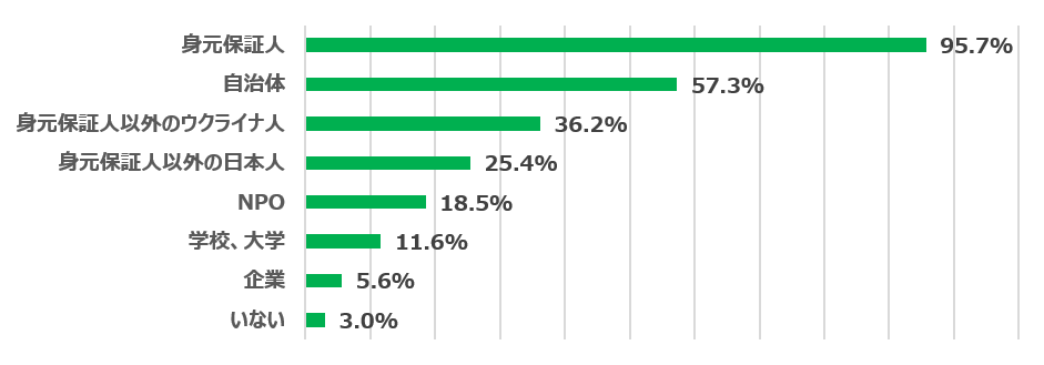 Q 困った時に相談できたり、支援をしてくれる団体はいますか?当てはまるもの全てを選択してください。