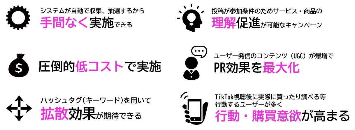 株式会社アクセスグループ・ホールディングス(東証スタンダード・7042)の事業子会社で、プロモーション支援事業を展開する株式会社アクセスプログレス(本社:東京都渋谷区、代表取締役社長 山口幸喜、以下「当社」)は、BtoBソリューションを提供する株式会社デジマース(本社:東京都品川区、代表取締役社長 石川達絵、以下「デジマース社」)との業務提携により、TikTokに対応した新サービス「動画投稿型キャンペーン」(以下、「本サービス」)の提供を開始いたしました。