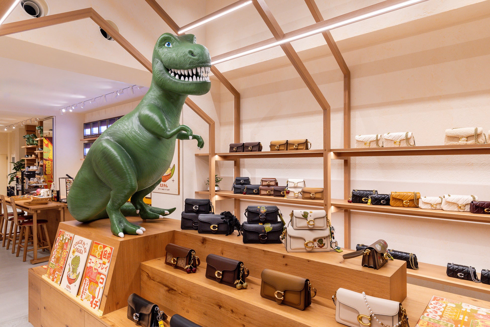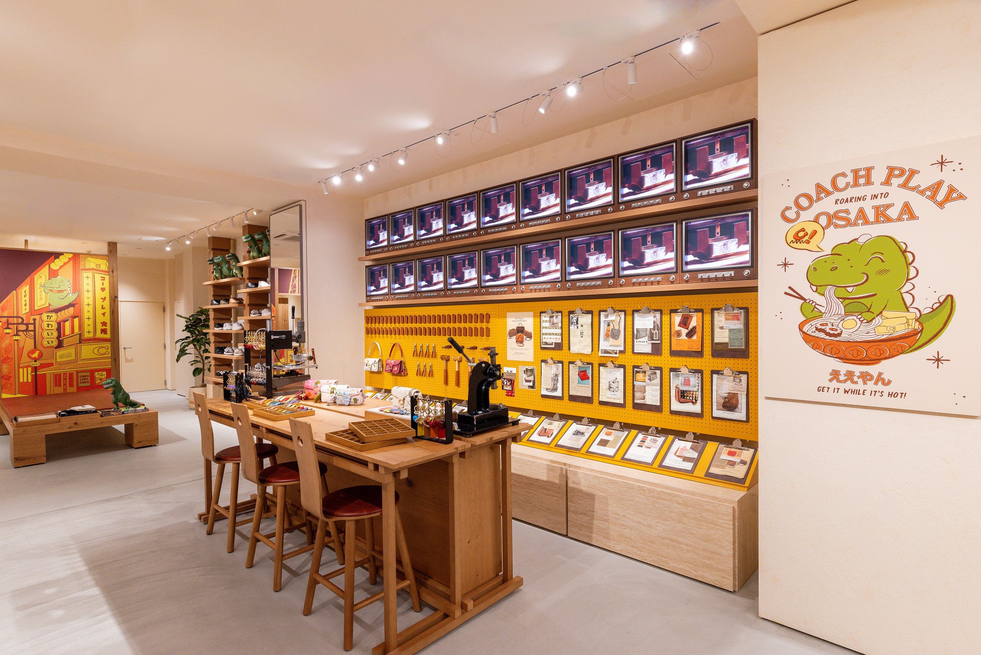 今回オープンした "コーチ プレイ 大阪" は、竹や木などの自然素材を用いたミニマルな和の要素と、大阪の街を象徴する鮮やかなネオンやアートのにぎやかさが融合した、唯一無二の空間。ポップな感性と日本の建築美が融合した家具が温もりと奥行きを添え、伝統とモダンが響き合う店内では、まるでプレイグラウンドのように、五感を刺激する体験をお届けします。