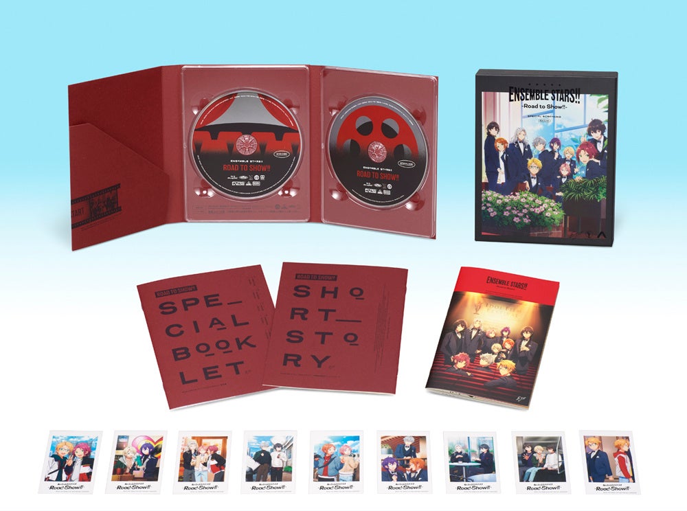 本商品は、原作アプリ連動ストーリーの完全新作特別上映アニメーションとして2022年3月4日より公開された『あんさんぶるスターズ!!-Road to Show!!-』本編を収録しています。封入特典の特典ディスクには、新作ピクチャードラマ「アイドルたちの休日 in NY」や、大川ぶくぶ先生による四コマ漫画「あんさんぶくぶスターズ!!」を映像化した週替わり映像「ぶくスタ The WORLD」を収録。さらに、2月26日に行われた先行上映舞台挨拶(出演:森久保祥太郎・天﨑滉平・諏訪部順一・海渡 翼・増田俊樹・伊藤マサミ)の模様や3 月24 日に行われた大ヒット御礼舞台挨拶(出演:梶 裕貴・天﨑滉平)の模様も収録しています。また、原作アプリシナリオライター 木野誠太郎書き下ろしショートストーリー「Aftertalk」や設定集(12P)、EDイラスト使用オフショット風フォトカード(9種)、パンフレット縮刷版も付属。キャラクターデザイン飯塚晴子描き下ろしBOXに収納されるなど、豪華特典満載の仕様となっています。