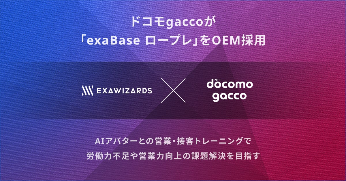 今回、ドコモgaccoはexaBase ロープレをOEM採用し、「gaccoロープレ」として提供することで、さまざまな業種の企業において課題となっている、営業人材のスピード育成に取り組んでいきます。
