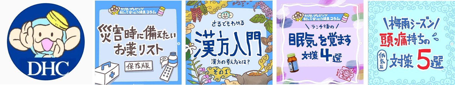 セルフケアを応援するパートナーとして、健康や医薬品に関する情報などを『DHCの医薬品 公式Instagram』にて、マスコットキャラクター「さる丸 薬ノ助(くすりのすけ)」が『正しく・面白く・わかりやすく』お伝えすることをモットーに、マンガやイラスト形式でお届けしています。
