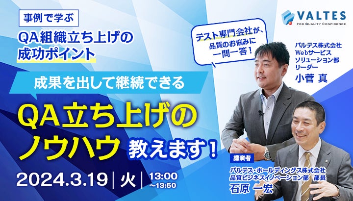 【3/19無料セミナー】QAの組織化を目指す方必見、テスト専門会社がQA立ち上げのポイントを教えます