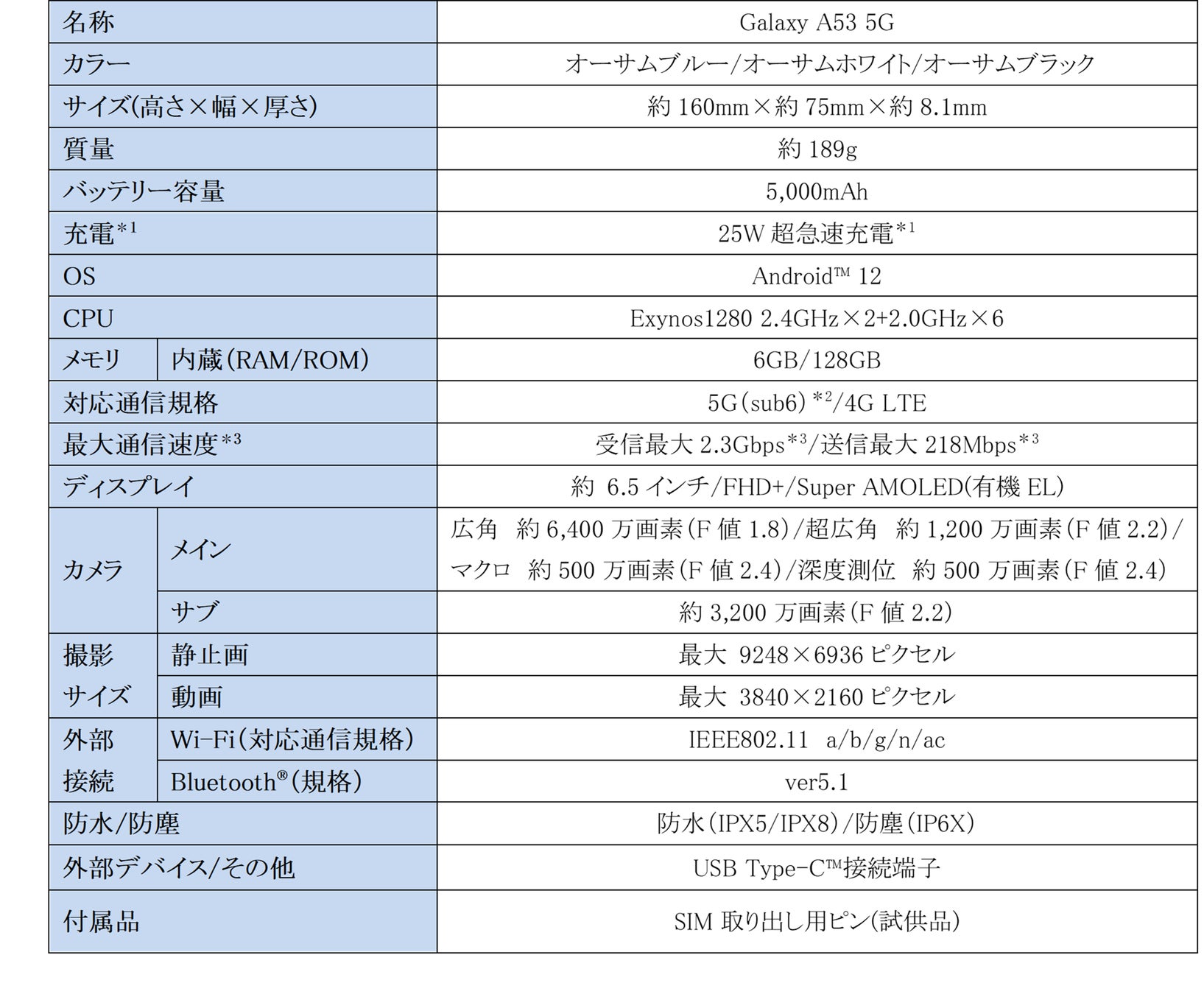 「Galaxy A53 5G」についての詳細ページ
