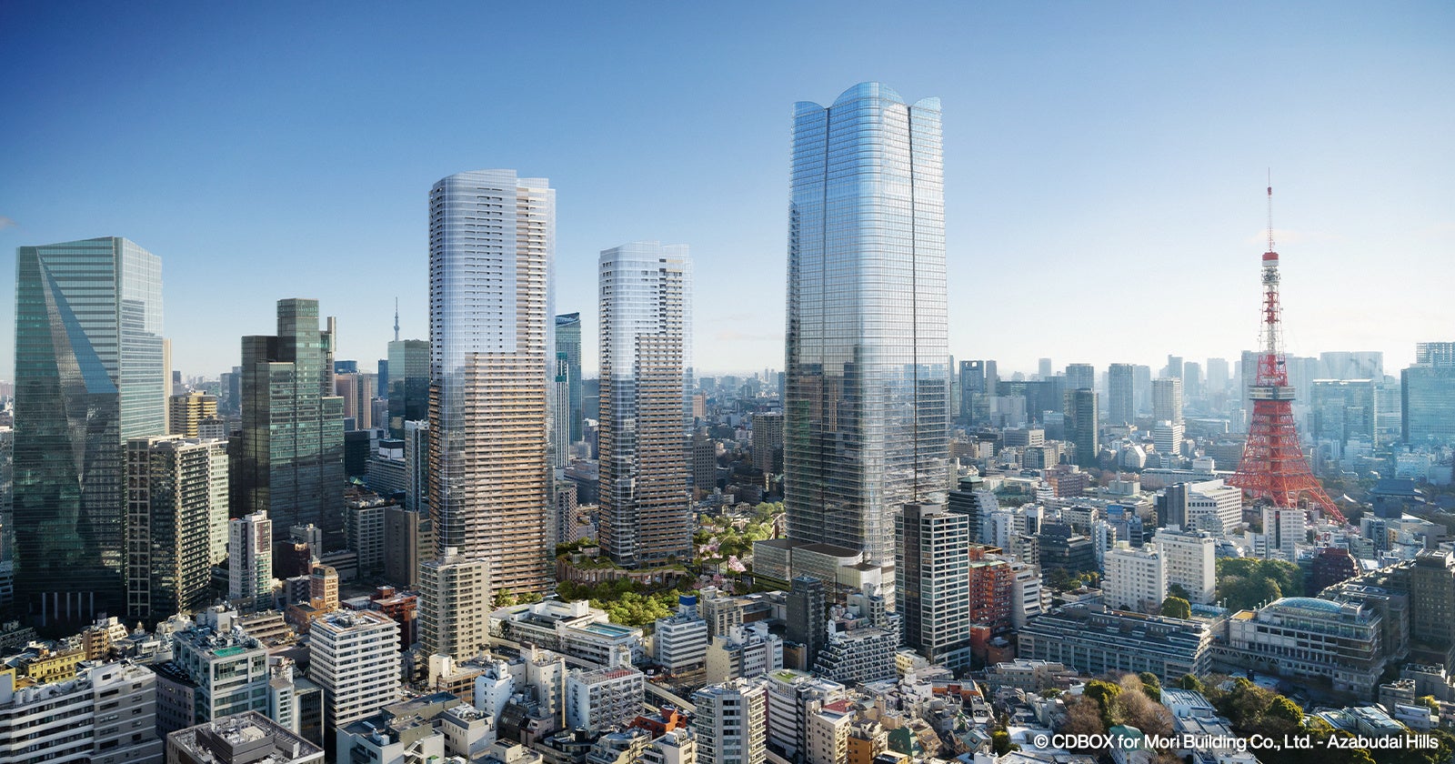 麻布台ヒルズは、広大な中央広場を街の中心に据え、オフィス、住宅、ホテル、インターナショナルスクール、商業施設、文化施設など、多様な都市機能を高度に融合させた新たな街です。環境や健康が重要性を増す現代において、“Green & Wellness”をテーマにした新しい都市像を提案します。2023 年 11 月 24 日(金)開業予定。
