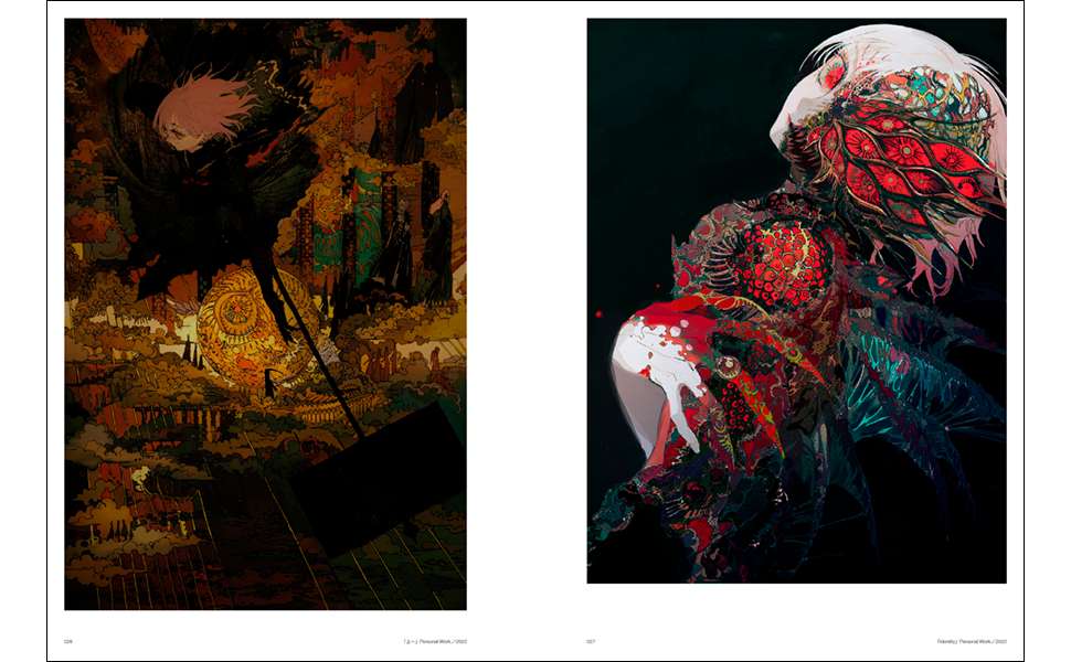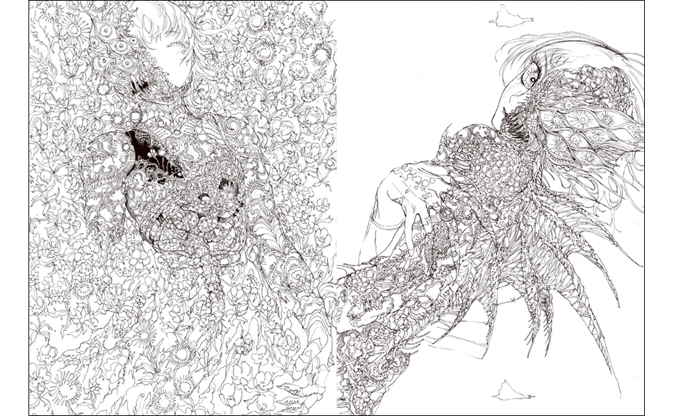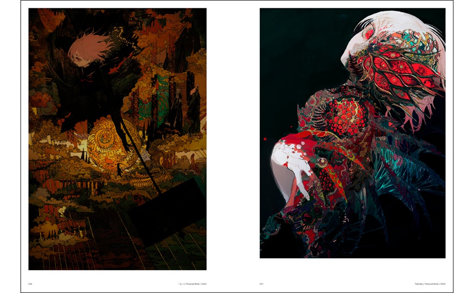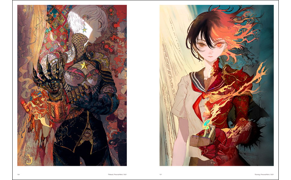 本画集では、活動初期から現在に至るまでの変遷を辿る厳選された作品とともに、描き下ろし作品を収録。作家の思考と手順を詳細に綴った2作品のメイキングや、作品の素といえるラフスケッチ集、創作の秘密に迫るインタビュー記事など……、作家の魅力を200ページ近くにも及ぶボリュームの中に余すところなく詰め込みました。