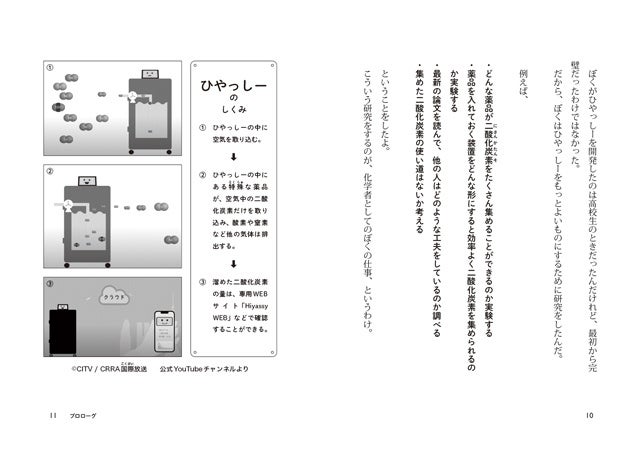 本書は、17歳で⼆酸化炭素の研究所をつくり、現在も夢をかなえるために日々奔走している村木さんの、化学に興味を持ち始めたきっかけから、現在の地球を救うための様々な研究、活動を描いた自伝的ノンフィクションです。