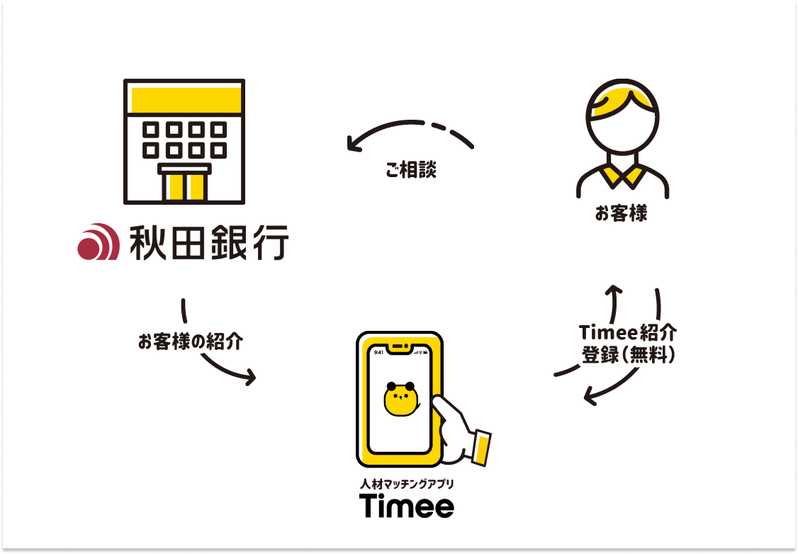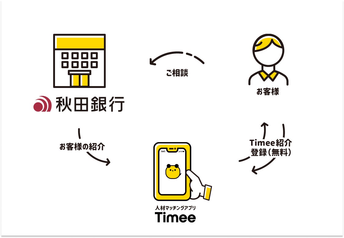 本提携では、秋田銀行がカバーする地域のお客様に対して、タイミーを活用した短期的な人手不足の解消、及びその後の長期的な採用のための活用を提案。地域企業の継続的な成長を支援し、エリアの経済活性化に資する事を目指します。