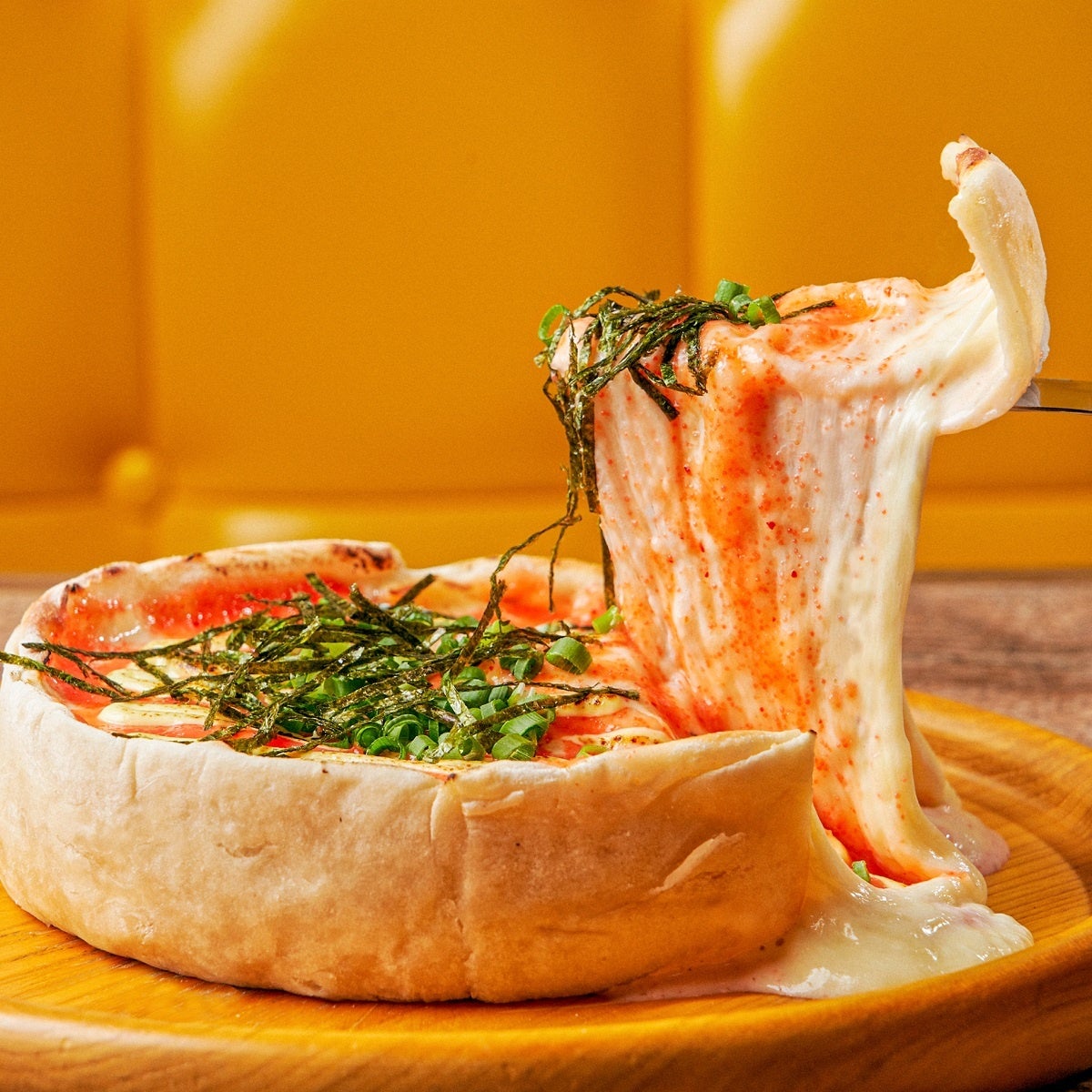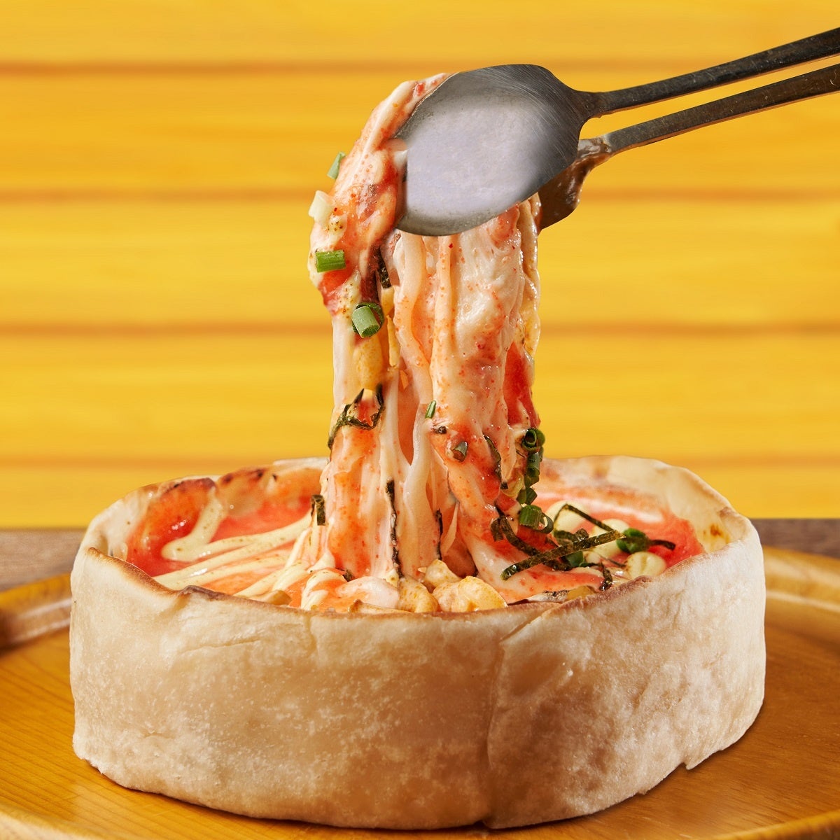 とろ~りチーズの海から出てきたのは?!なんと、もっちもちの明太子パスタ!シカゴピザのおいしさはそのままに、パスタが入ることで新感覚の味わいが楽しめます。自家製明太子ソースと濃厚チーズをたっぷり絡めてお召し上がりください。
