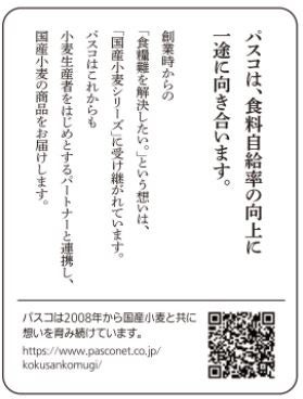 二次元コードを読み込むと「Pascoと国産小麦」 サイトより、企業としての取り組み、国産小麦に関わる小麦生産者やお客さまの声、Pascoのメッセージをご覧いただけます。