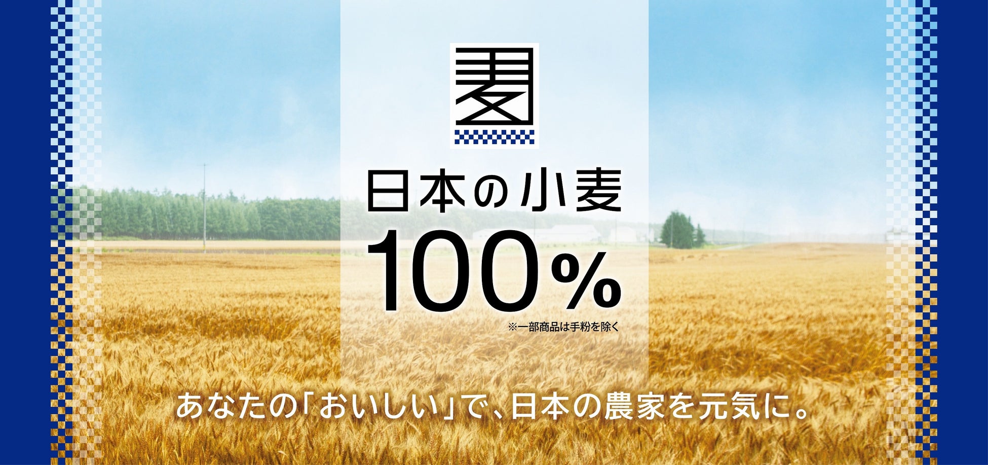 新しいロゴ「日本の小麦100%」を配し、日本の伝統的な和柄である「市松模様」を基にしたパッケージデザインに一新します。