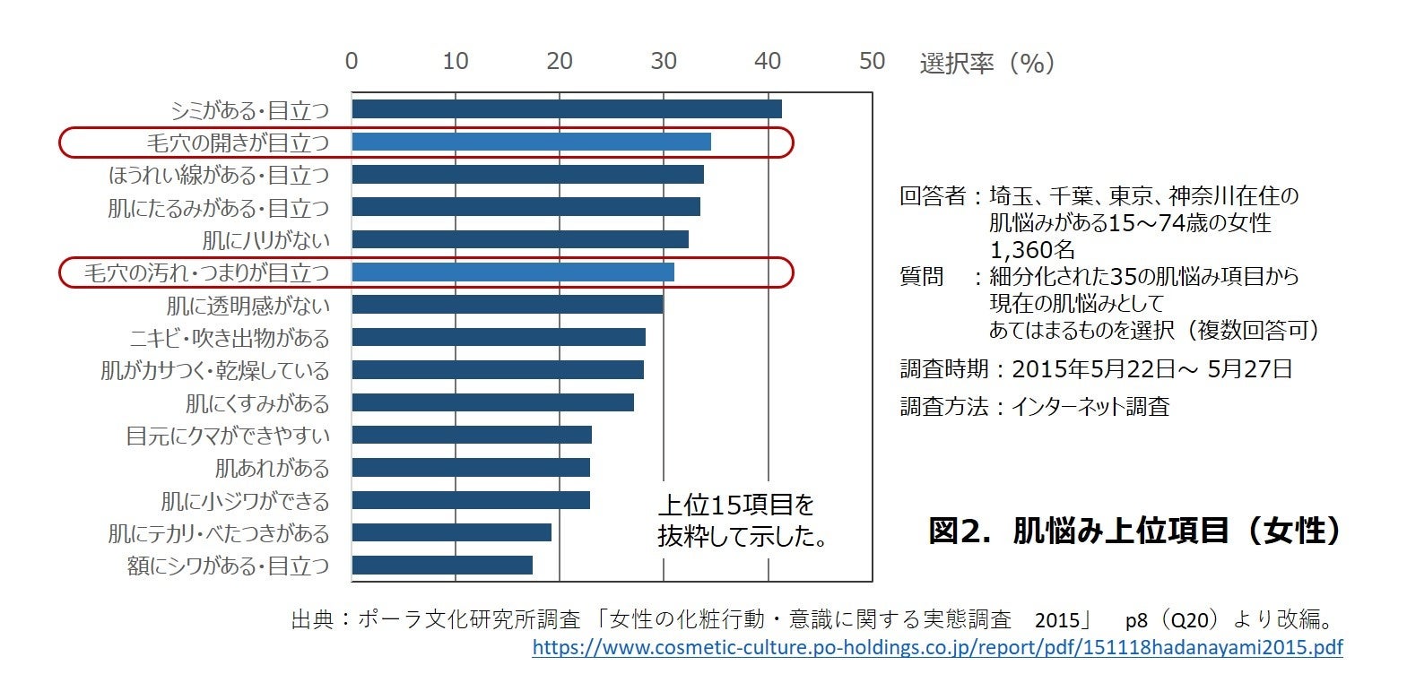 - 女性の肌悩み 第2位 “毛穴の目立ち”