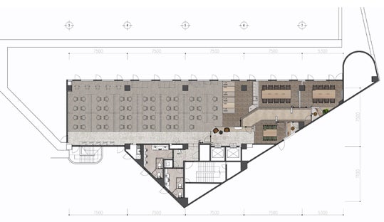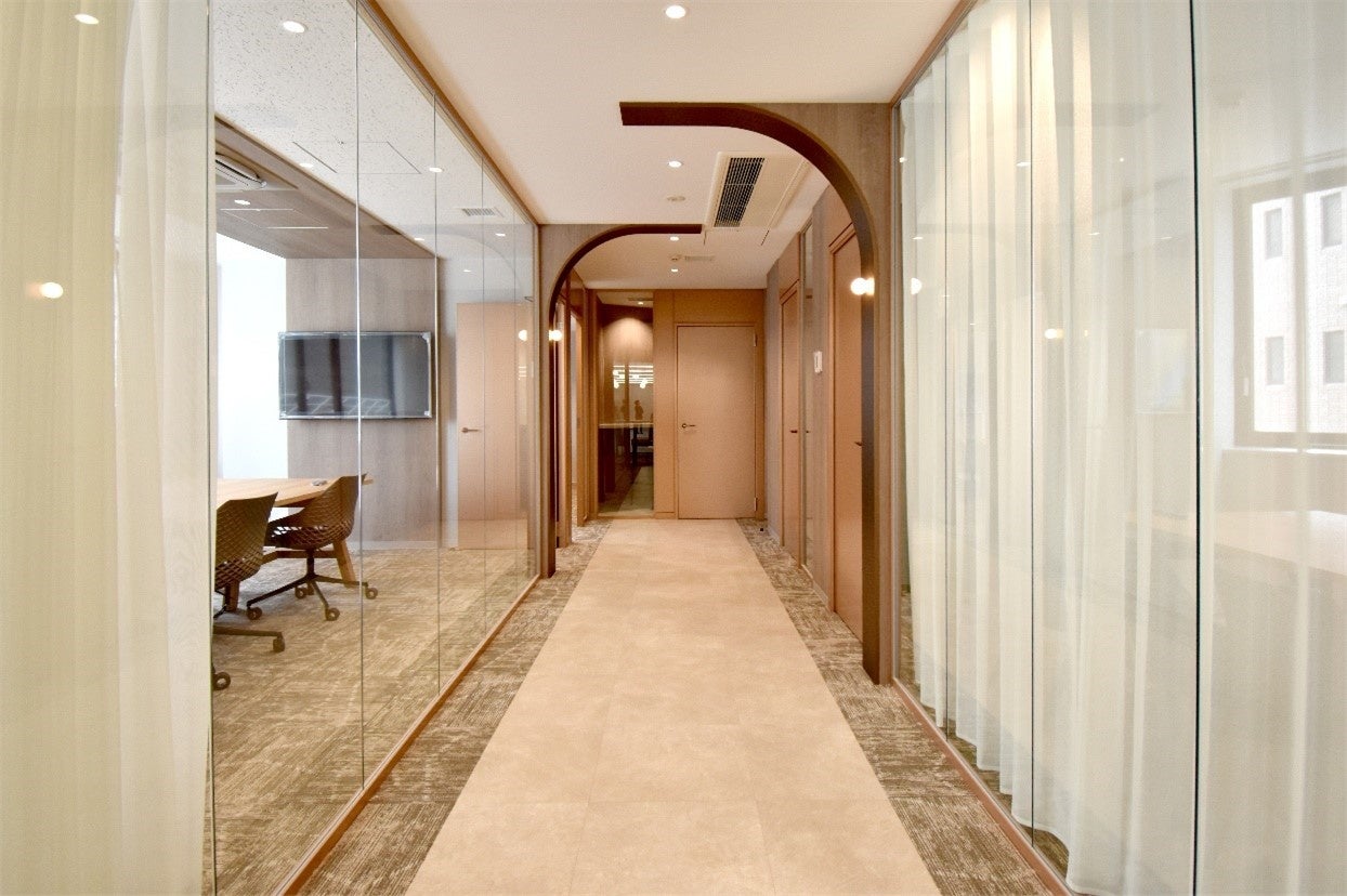 本物件は、セットアップオフィスとしては比較的大きい約95坪の広さがあり、会議室を3室、オンラインミーティング等に利用できる個室を2室、その他にもカジュアルな打ち合わせで使用しやすいファミレス席や、ドライパントリーなどを備えました。また、照明には調光機能を採用しており、時間帯やシーンに応じてボタンひとつで明るさを調整できます。