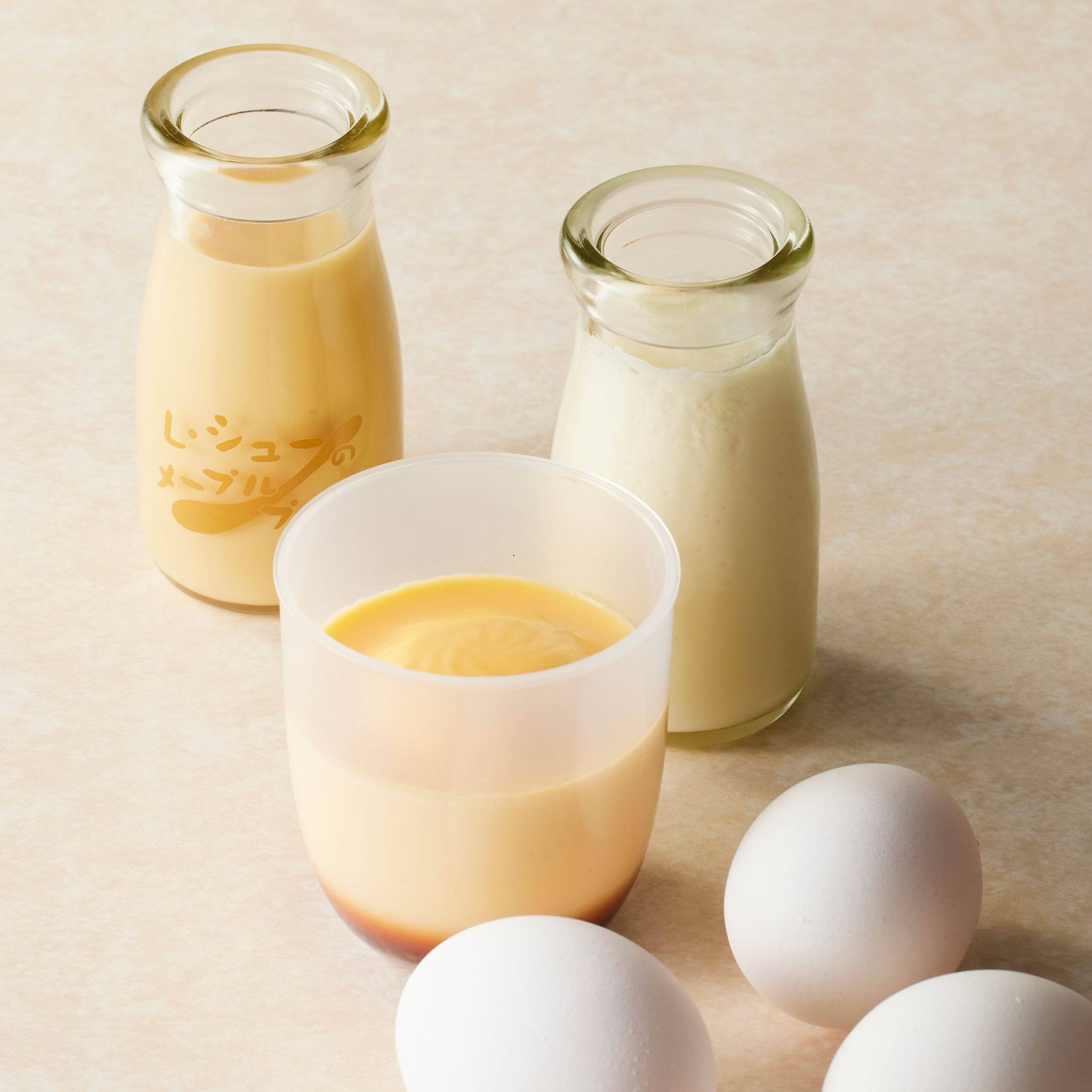 極上卵『日光金乃卵』を使用したレ・シューの代表作である「にしかまプリン」とトロトロの食感のメープルプリン