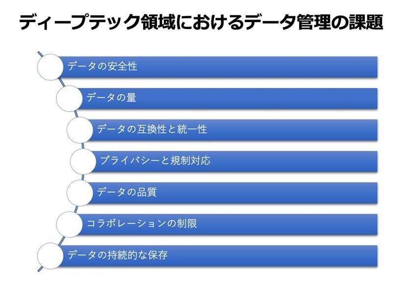 ディープテックに関連するデータ管理に関するこれらの課題は、ディープテックの各分野における研究や開発を進める上で、十分に考慮されるべき重要な要素です。
