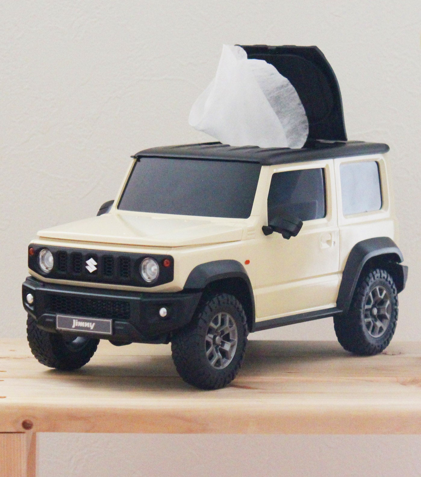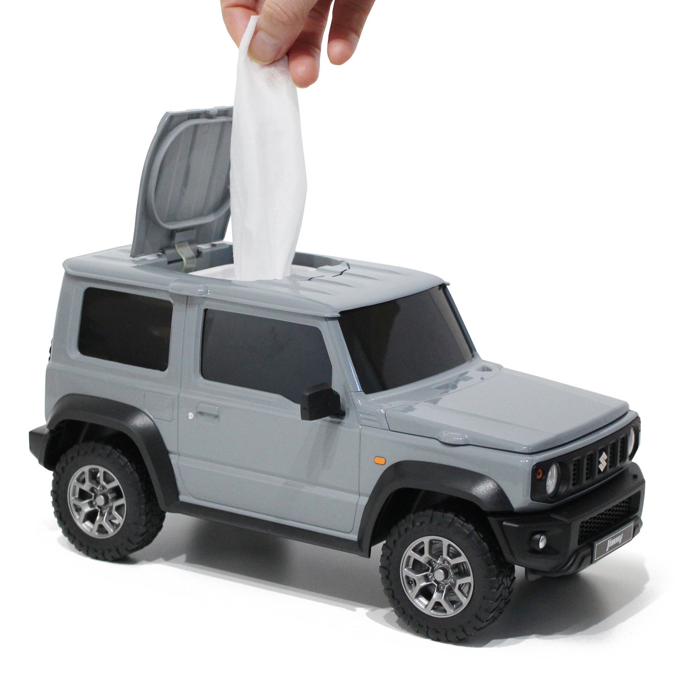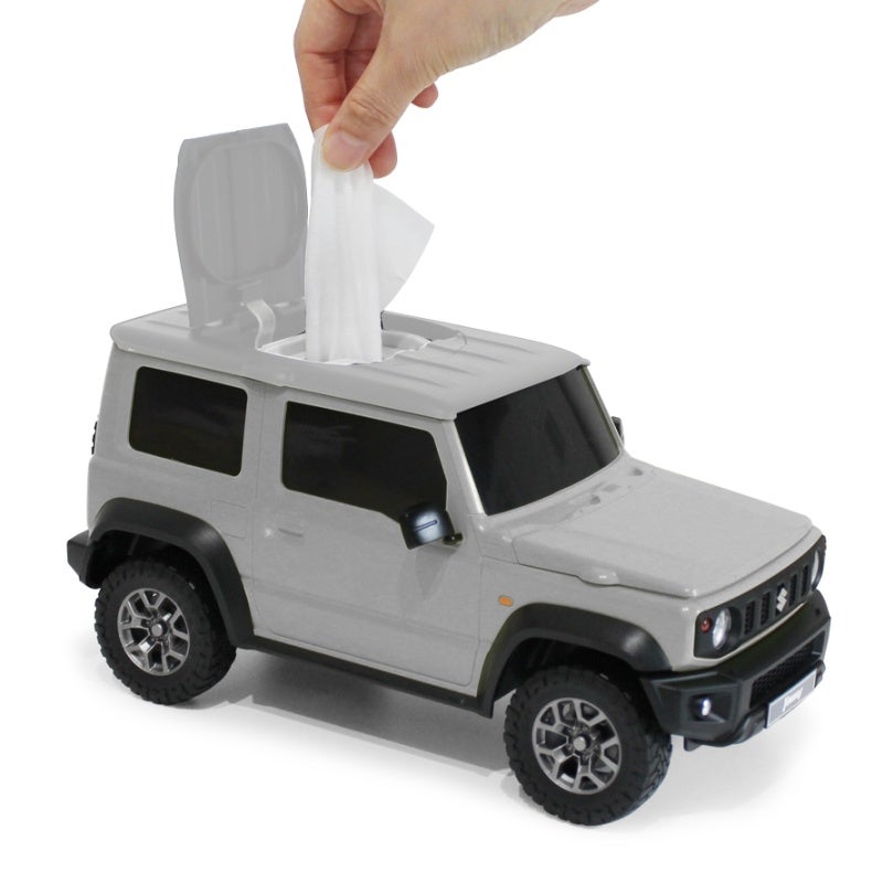 ミニカーの見た目をした「ジムニー シエラ型 ウェットティッシュケース」が小田急百貨店新宿店(7階)に登場しました。1/12というスケールでジムニーを細部まで再現したウェットティッシュケースは、使う時だけルーフ部分のボタンを押すことでフタが開き、セットしたウェットティッシュケースを取り出すことができる遊び心たっぷりの仕様。ボンネットが開いたり、ルーフの取り外しが可能なため小物入れやミニラックとしても使うことができるほか、インテリアとしてもお楽しみいただけます。