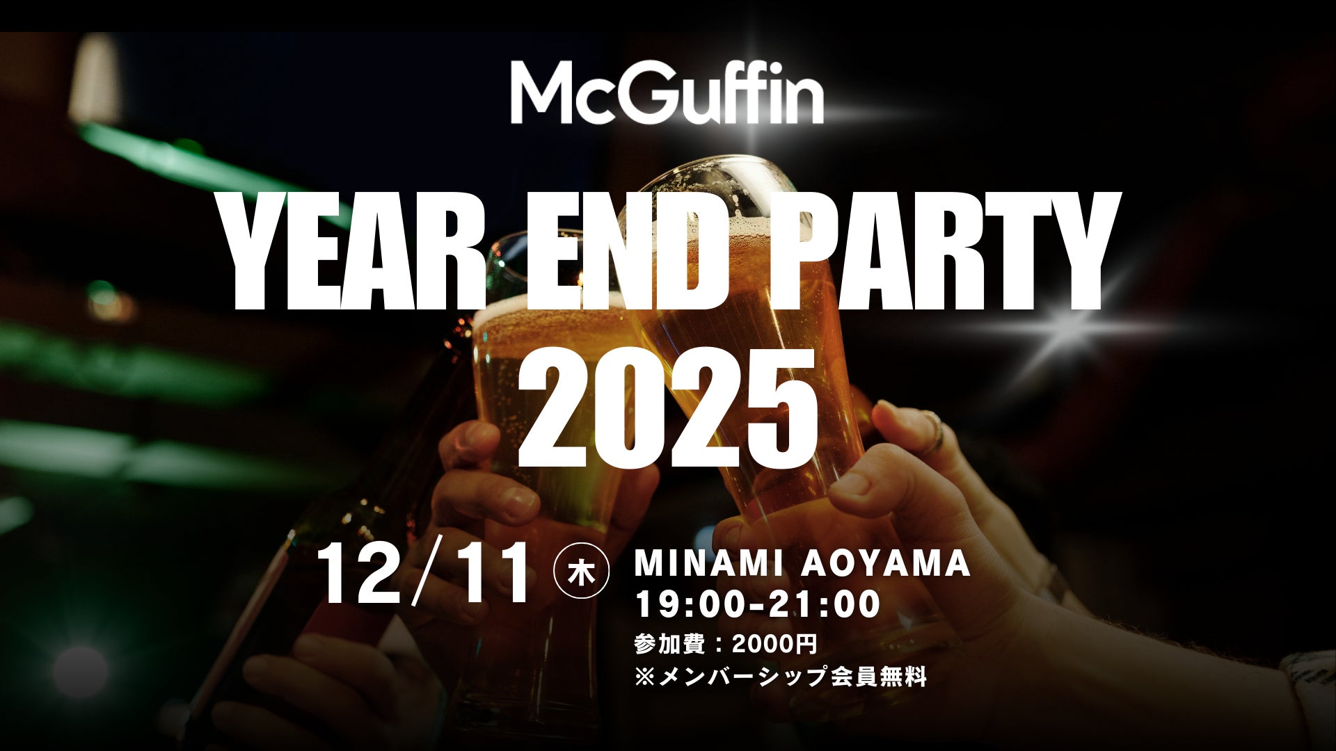 株式会社ニューステクノロジー(本社:東京都港区、代表取締役:三浦純揮)が運営するカルチャー動画メディア「McGuffin(マクガフィン)」は、12月11日(木) 19:00〜21:00に初の忘年会イベントを開催することをお知らせします。当日は、2025年のヒット動画TOP10を編集部が振り返るコーナーや参加者限定で公開前の動画の先行上映会、抽選で5名様に編集部が厳選した「McGuffin」動画に関連するアイテムが当たるプレゼント企画など、編集部と交流しながら、様々なコンテンツをお楽しみいただけます。さらに、メンバーシップ会員の方には、本イベントでしか手に入らない限定カラーのオリジナルステッカーをプレゼントします。