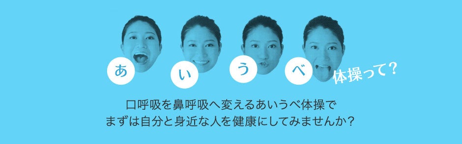 インフルエンザ予防・アレルギーの改善体操としてTVや雑誌等でも著名な「あいうべ体操」。あいうべ協会が本当に伝えたいことは、日本人の大半が「口呼吸」による弊害で病気になり、「鼻呼吸」にすることで様々な病気の予防・改善に促せるという事実です。食事の質で体が決まるように、呼吸の質でも体が決まってしまいます。
