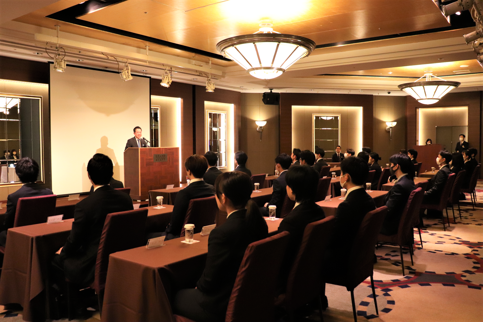 式では、代表取締役社長 渡辺淳一やSVより祝辞が述べられ、新入社員に向けてエールが贈られました。