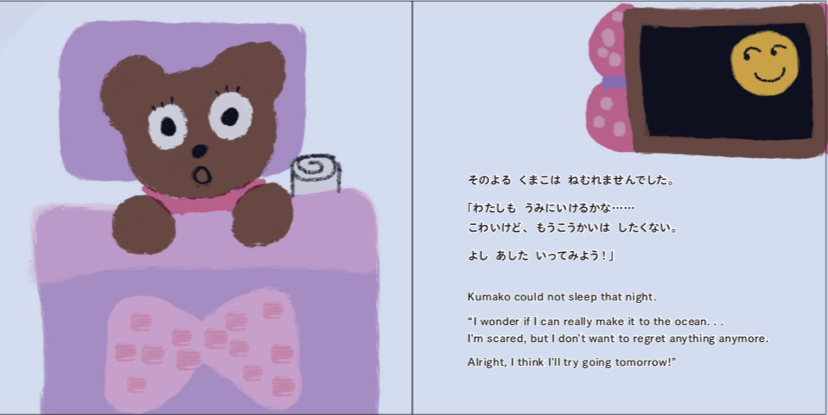 なんどもなんども絵本を読んで、ネイティブが話す自然な英語に触れて、くまこと一緒に英語の世界に浸ってもらいたいと思います。