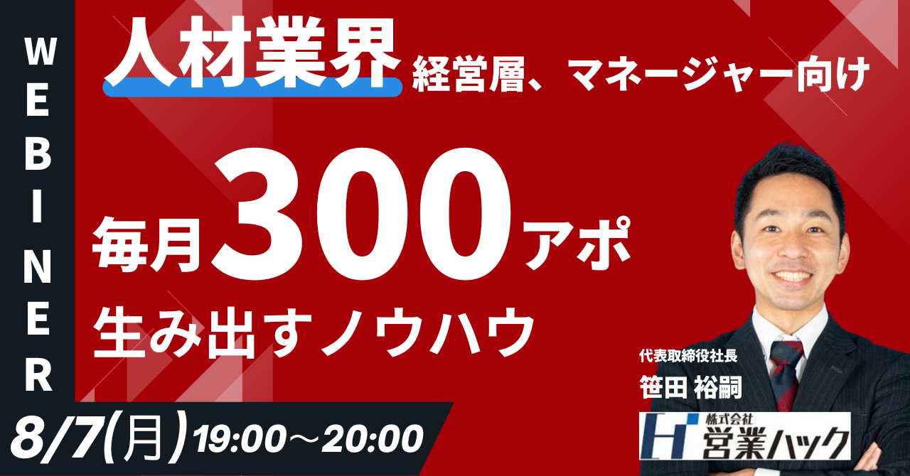 【毎月300アポを生み出す】人材業界のアウトバウンドノウハウを徹底解説します《8/7(月)19:00~無料オンラインセミナー》