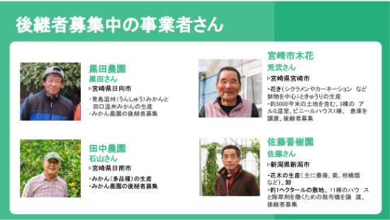 セミナーでは、後継者募集事業者の皆さまにも登壇いただき、「事業承継がより現実的になった」「(後継者募集をしている)事業者の皆さんの生の声は大変役立った」との声をいただいております。relayでは引き続き、JA三井リース様と共に循環型経済社会の構築を目指し、様々な取り組みを行ってまいります。
