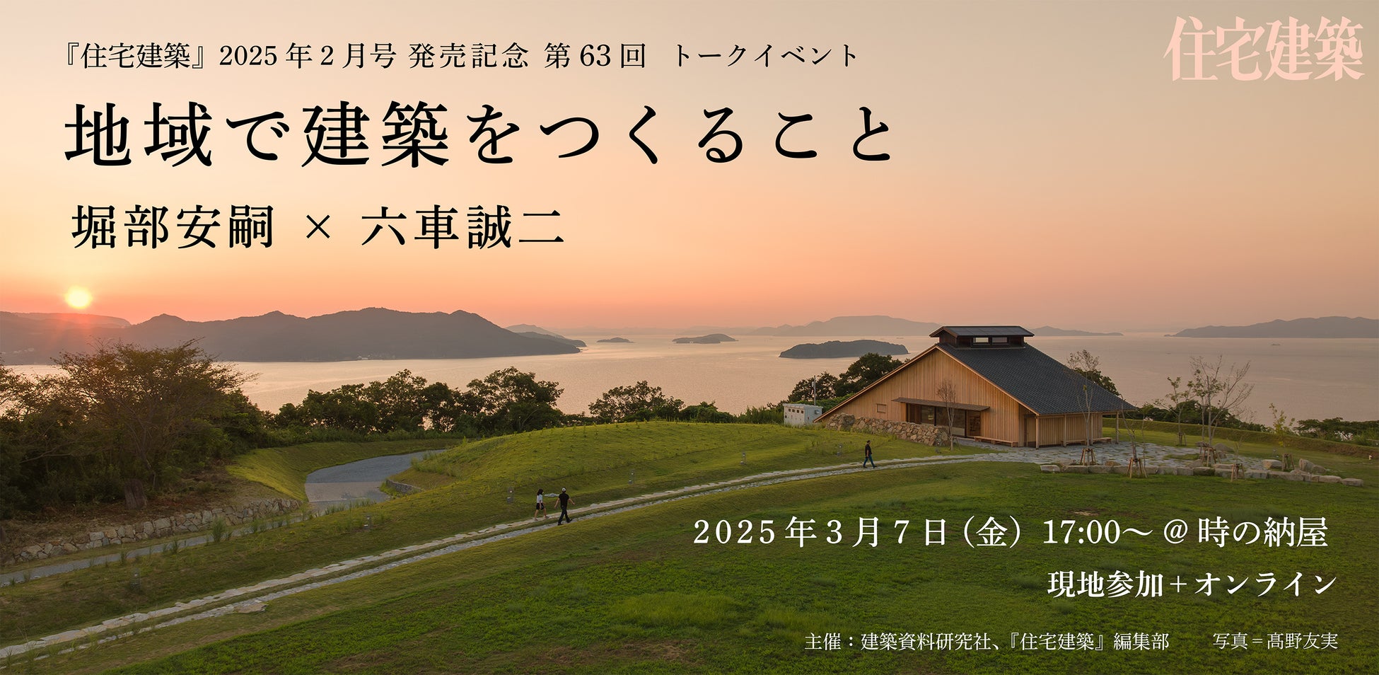 第63回住宅建築トークイベント「地域で建築をつくること」 堀部安嗣×六車誠二 現地参加+LIVE配信のハイブリッド開催