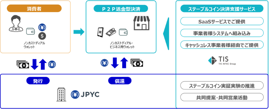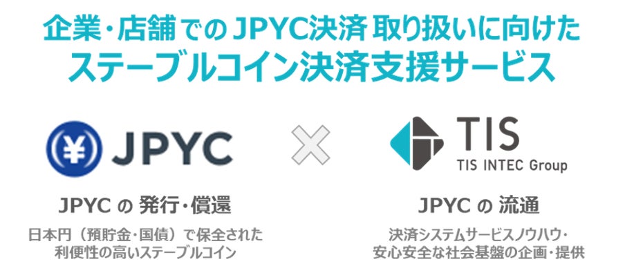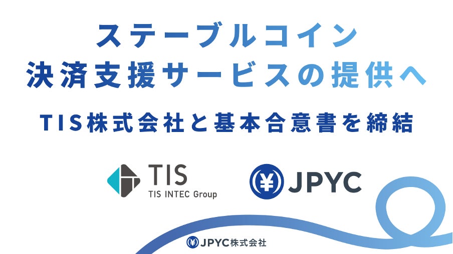 JPYC株式会社(本社:東京都千代田区、代表取締役:岡部典孝、以下:当社)は、TISインテックグループのTIS株式会社(本社:東京都新宿区、代表取締役社長:岡本安史、以下:TIS)と、日本円建ステーブルコイン「JPYC」の普及に向けて、事業化の検討、新たなビジネスの創出、顧客開拓や事業推進を共同で行うための基本合意書を、2025年10月31日付で締結したことをお知らせします。