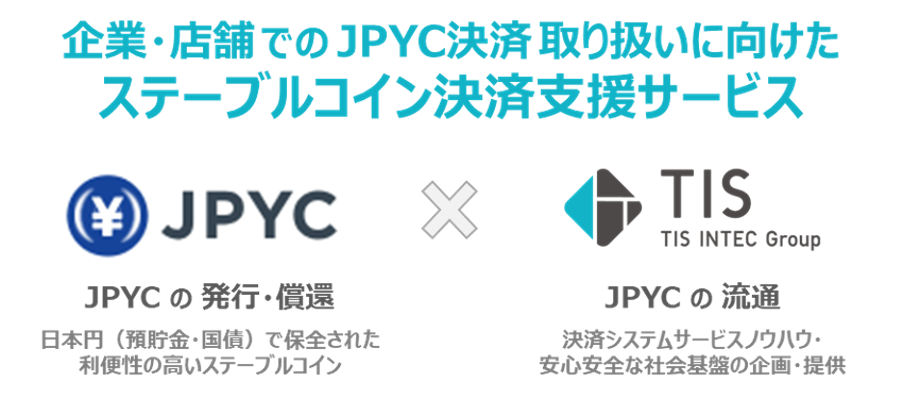 TIS株式会社と、「ステーブルコイン決済支援サービス」への組込を通じた日本円建ステーブルコイン「JPYC」の社会実装に向けた基本合意書を締結