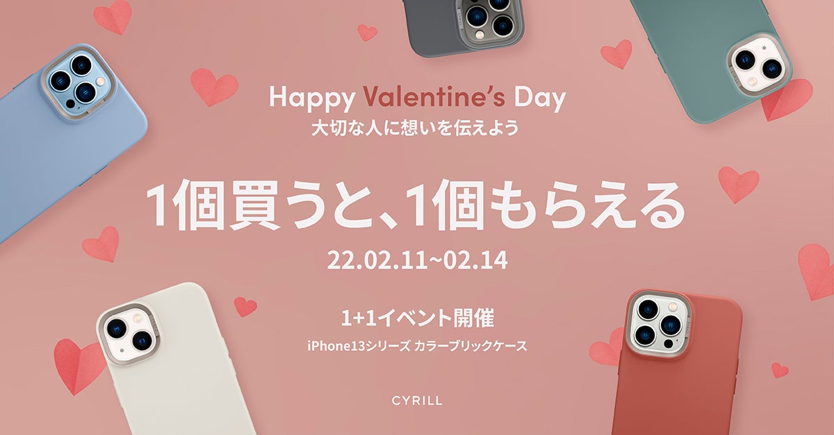女性向けのスマホケースで有名なCYRILLが、「バレンタインデー」を記念し, 1+1キャンペンを行います。