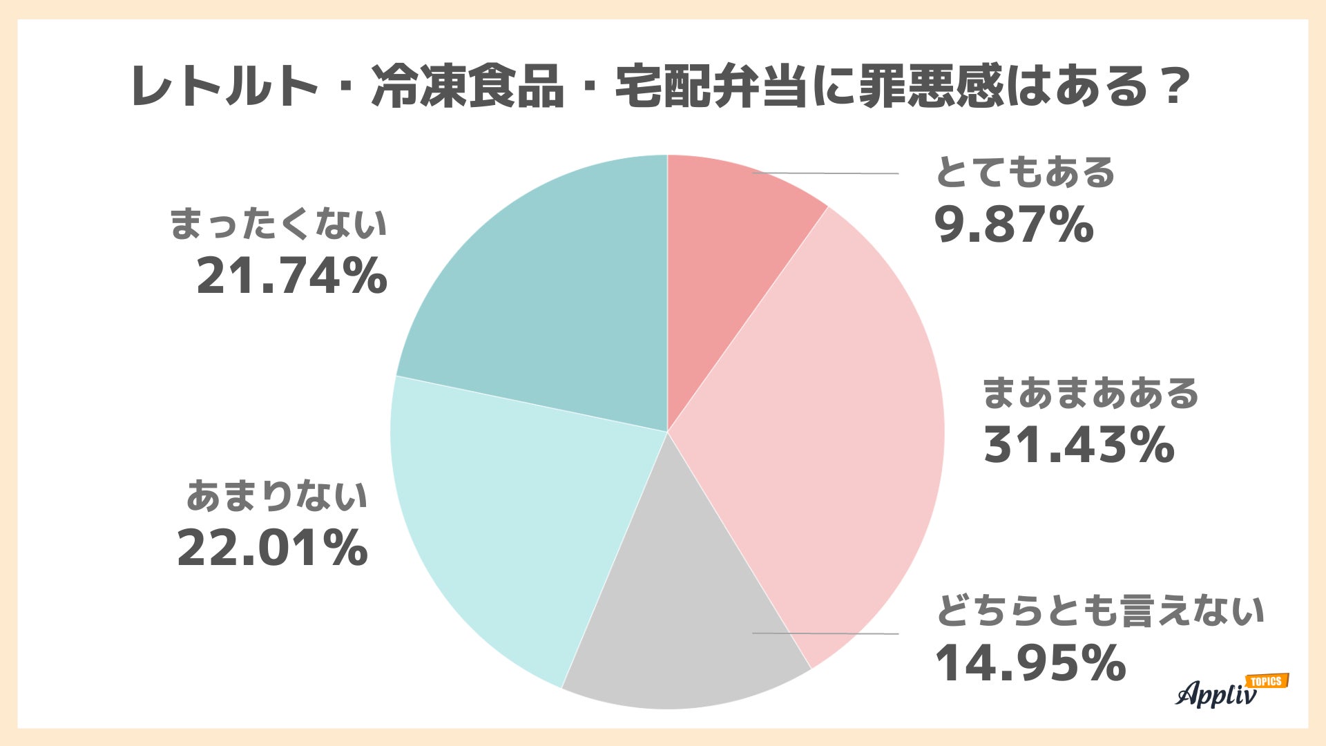 - レトルト・冷凍食品・宅配弁当などを使うことに罪悪感を覚える人は約4割。