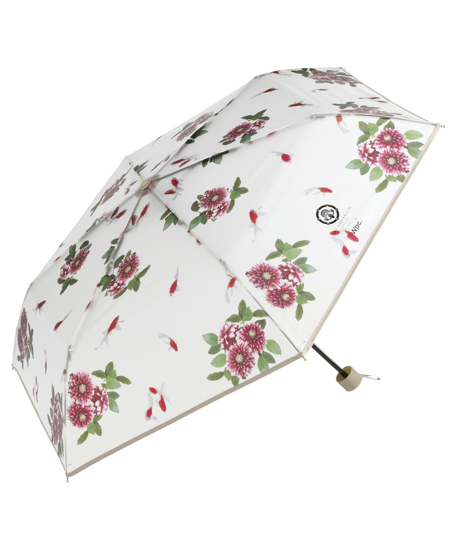 ビニール素材の半透明の生地には水槽の中を悠々と泳ぐ主役の金魚をはじめ、色とりどりの光彩、揺れる水草や花がWpc.の世界観で美しく描かれています。雨の日に傘を広げると光が差し込み、水中の幻想的な世界をそのまま持ち歩いているかのような感覚に浸れる1本です。また日本独自の”金魚鑑賞”という文化を堪能できる傘は、日本のお土産として外国人観光客にもオススメです。
