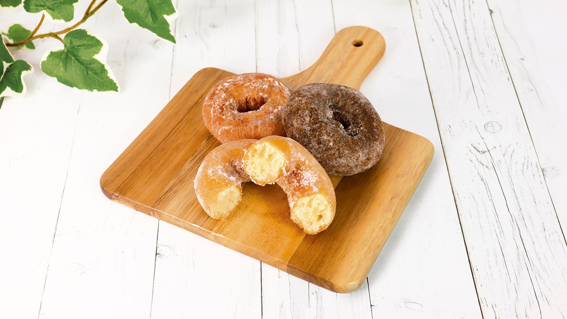 不二家の新ブランド「ペコちゃんmilkyドーナツ」です。米油でひとつひとつ丁寧に揚げた素朴で優しい味わいのドーナツです。「ミルキー」の風味をイメージした、軽いくちどけの不二家自慢のドーナツをお楽しみください。