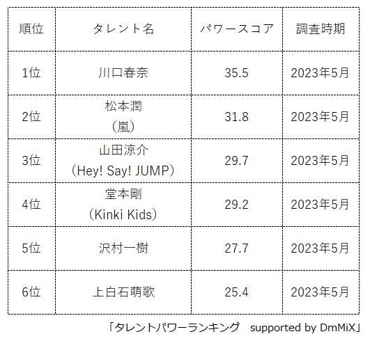「タレントパワーランキング supported by DmMiX」である旨を明記
